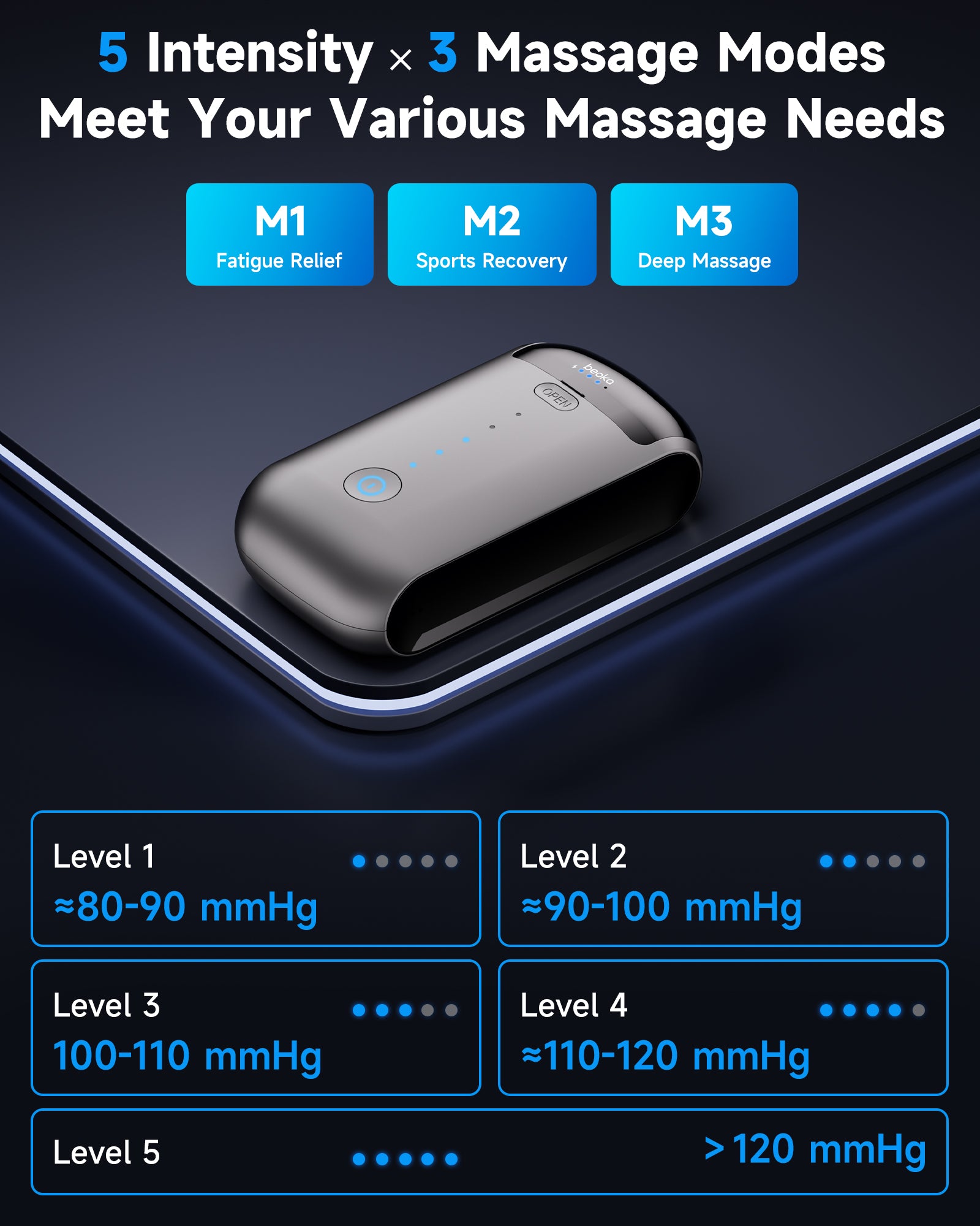 Offering multiple massage modes, including mimicked hand kneading and squeezing techniques, to cater to various needs, from professional sports recovery to leg pain alleviation and everyday relaxation.