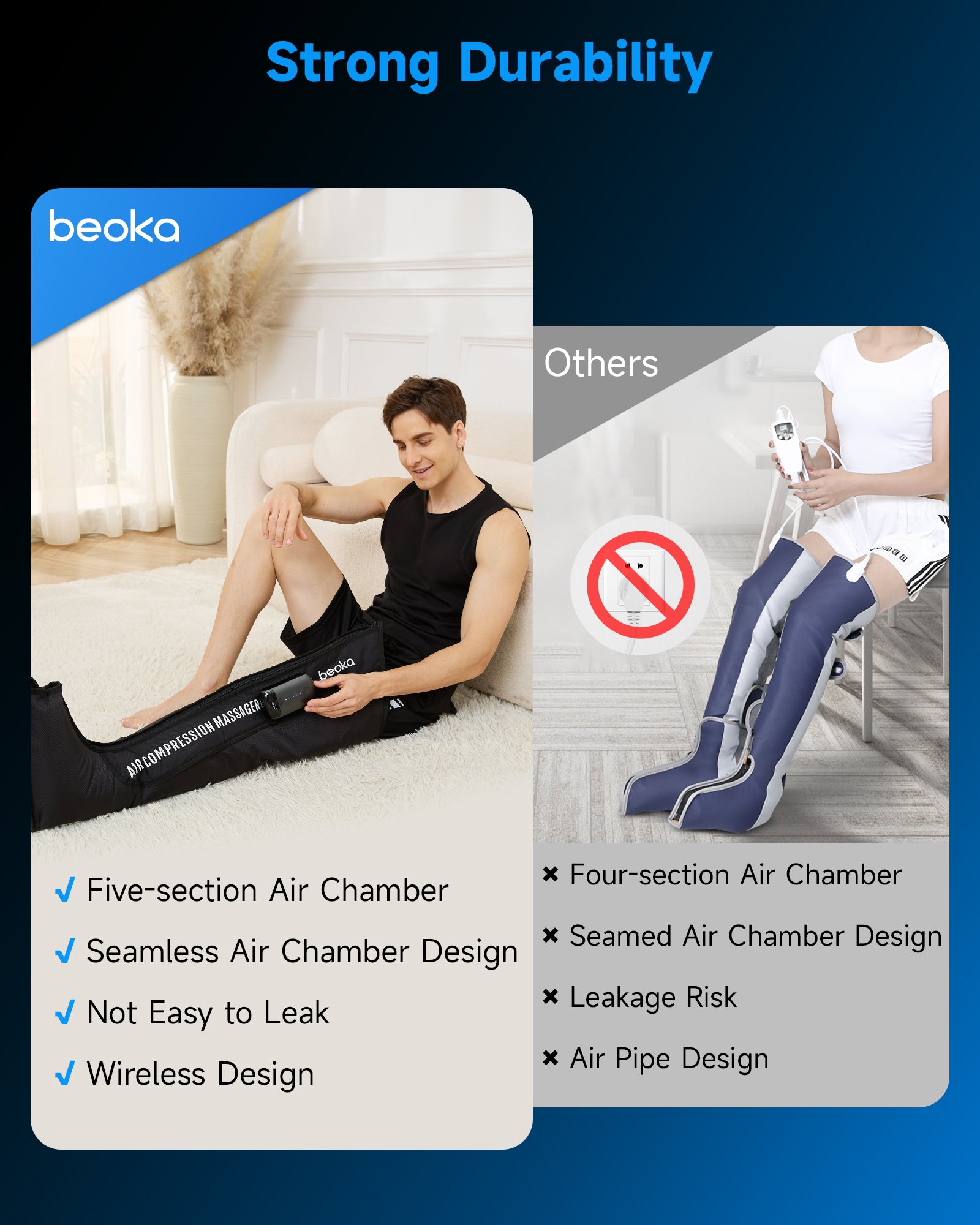 The BEOKA Wireless Air Compression Boots are suitable for a wide range of users. For office workers who stand or sit for long periods, it helps relieve leg fatigue and swelling. For fitness enthusiasts, it accelerates muscle recovery and reduces lactic acid buildup after workouts. For seniors, it improves blood circulation and enhances leg flexibility. However, individuals with severe leg vascular diseases, skin injuries, or infections should consult a doctor before use.